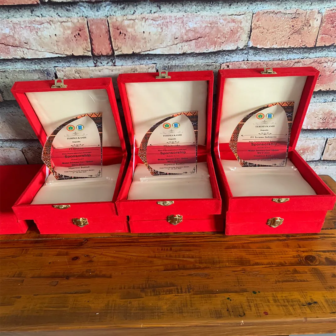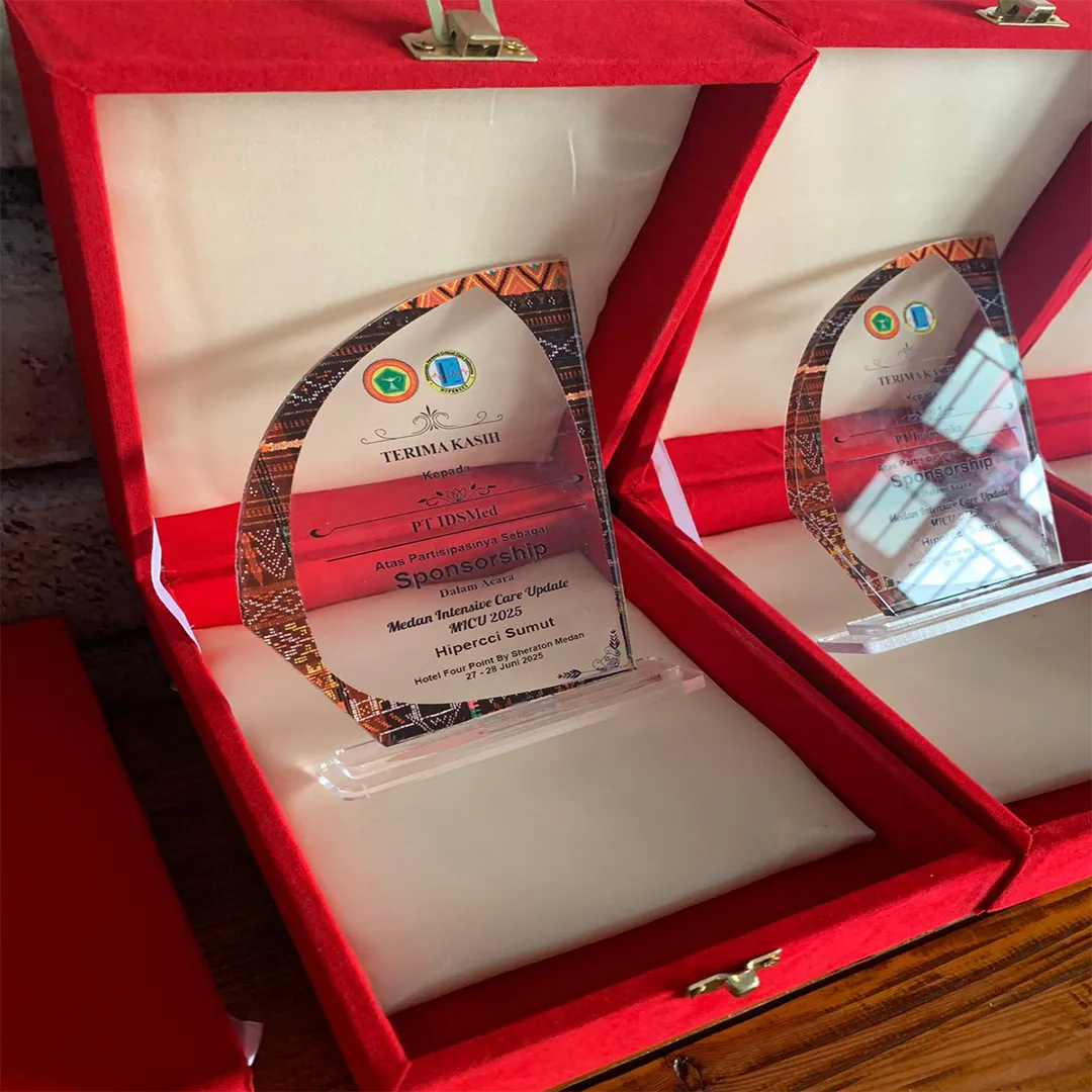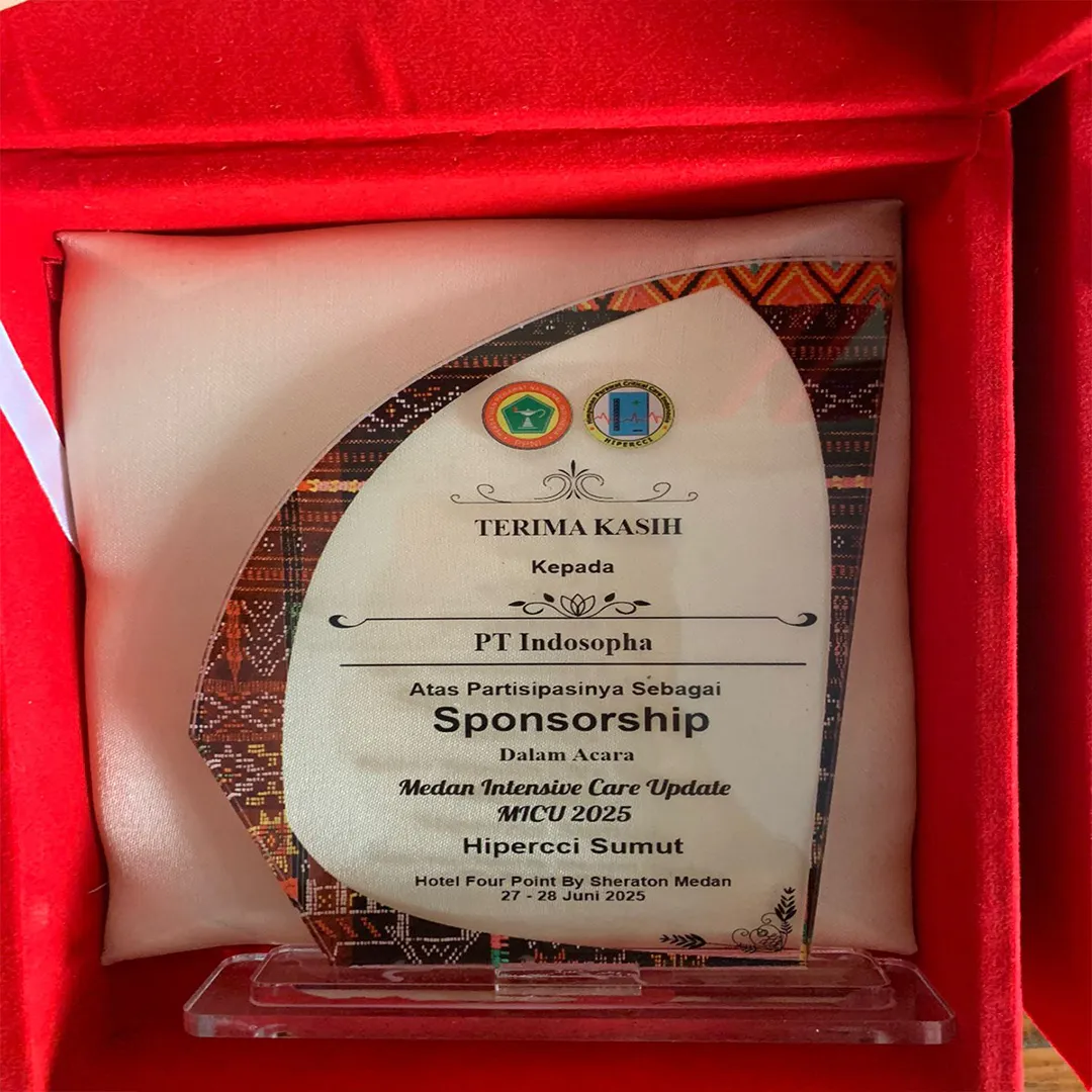 An award plaque given to PT Indosopha for its participation as a sponsor in the Medan Intensive Care Update (MICU) 2025 event organized by Hipercci Sumut.
