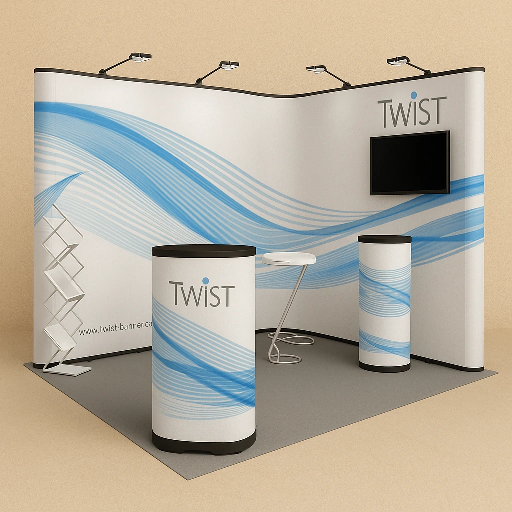 A complete booth setup designed to support exhibitions, trade shows, and promotional activities. Built with durable materials and customizable branding surfaces, it creates a professional space to engage visitors and showcase products.