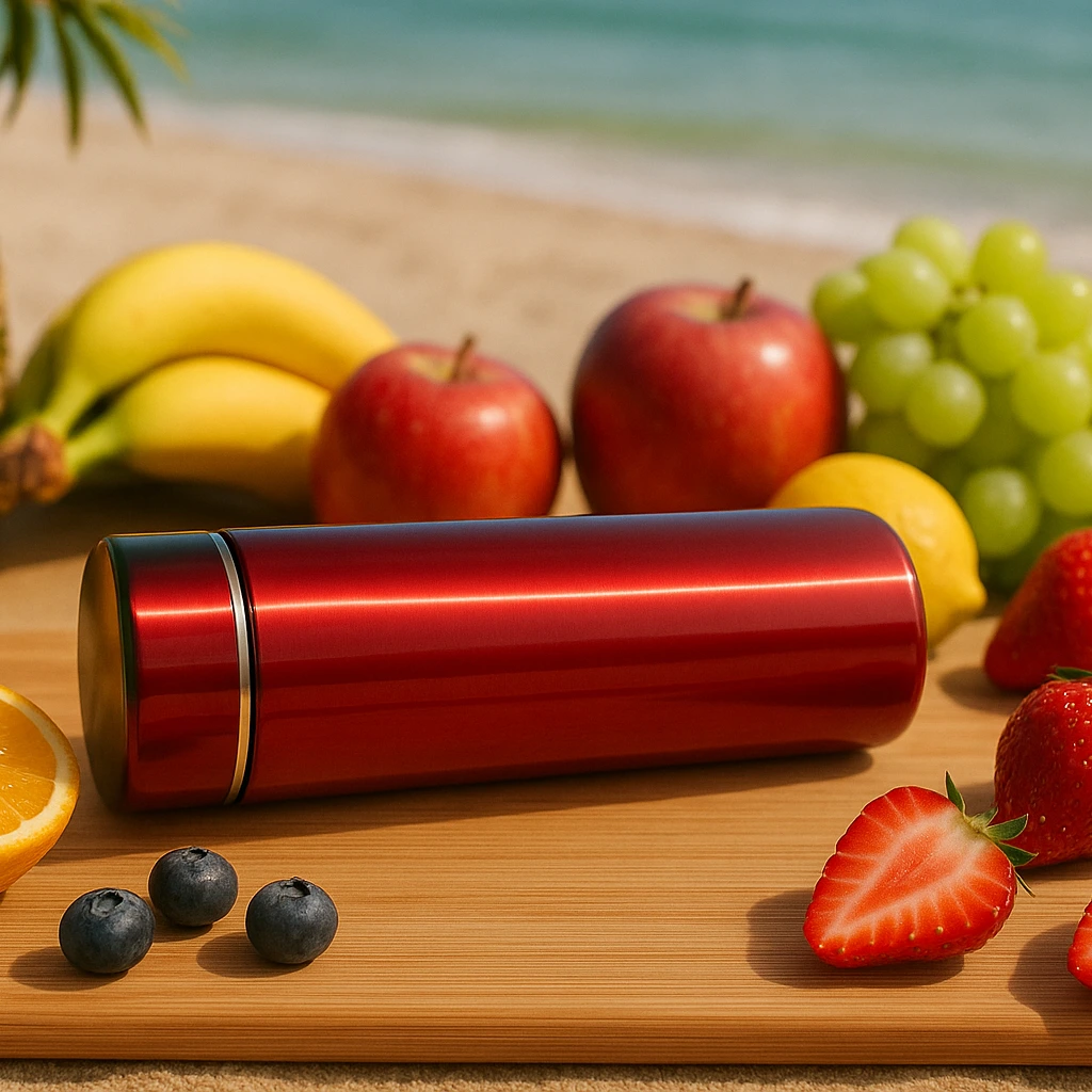 A glossy-finish tumbler equipped with an LED temperature display. Combines modern design with smart functionality, allowing users to check beverage temperature instantly.