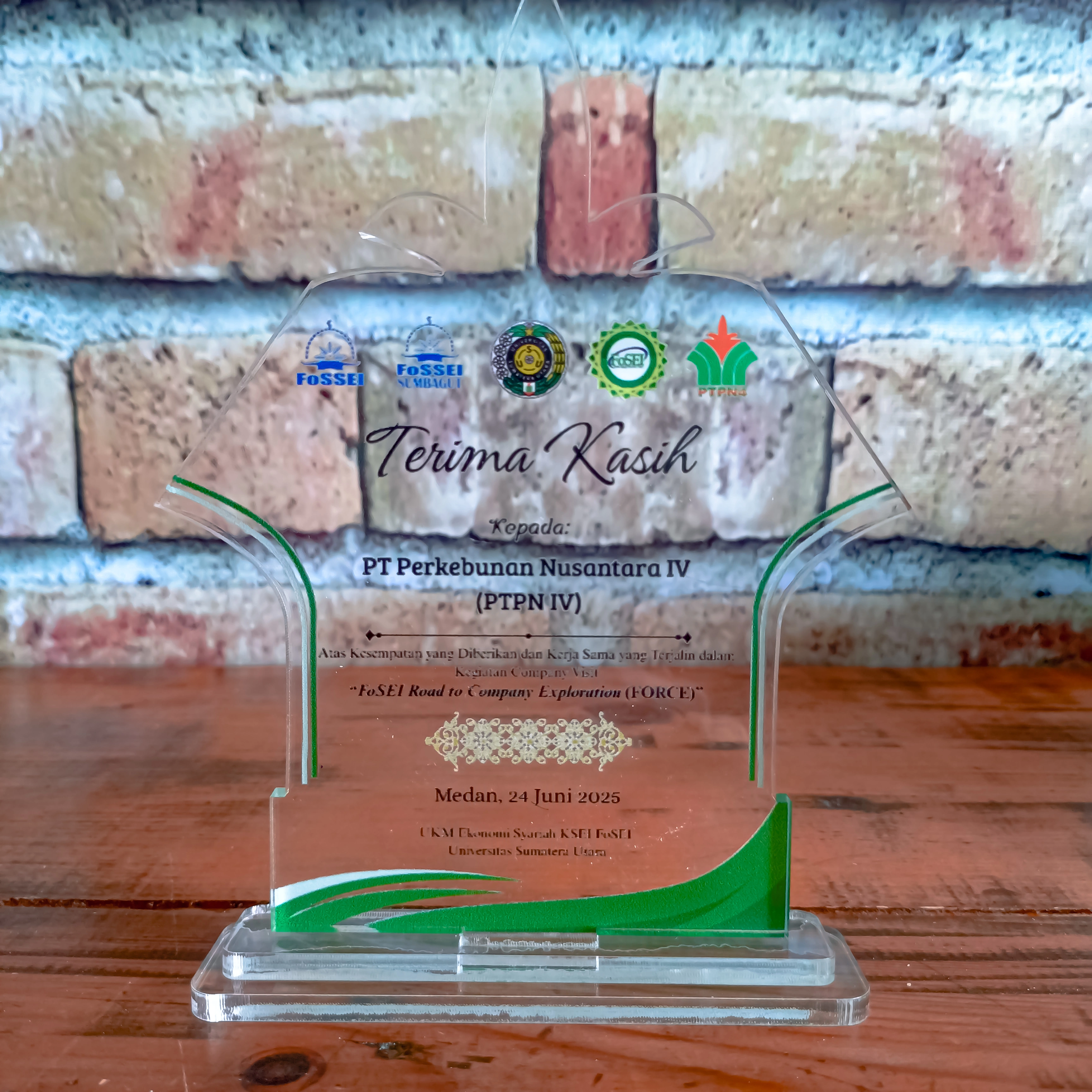 This leaf-shaped plaque is made of high-quality clear acrylic with an elegant and modern design. Placed in a green velvet box with a cream-colored inner lining, this plaque gives a luxurious and professional impression.